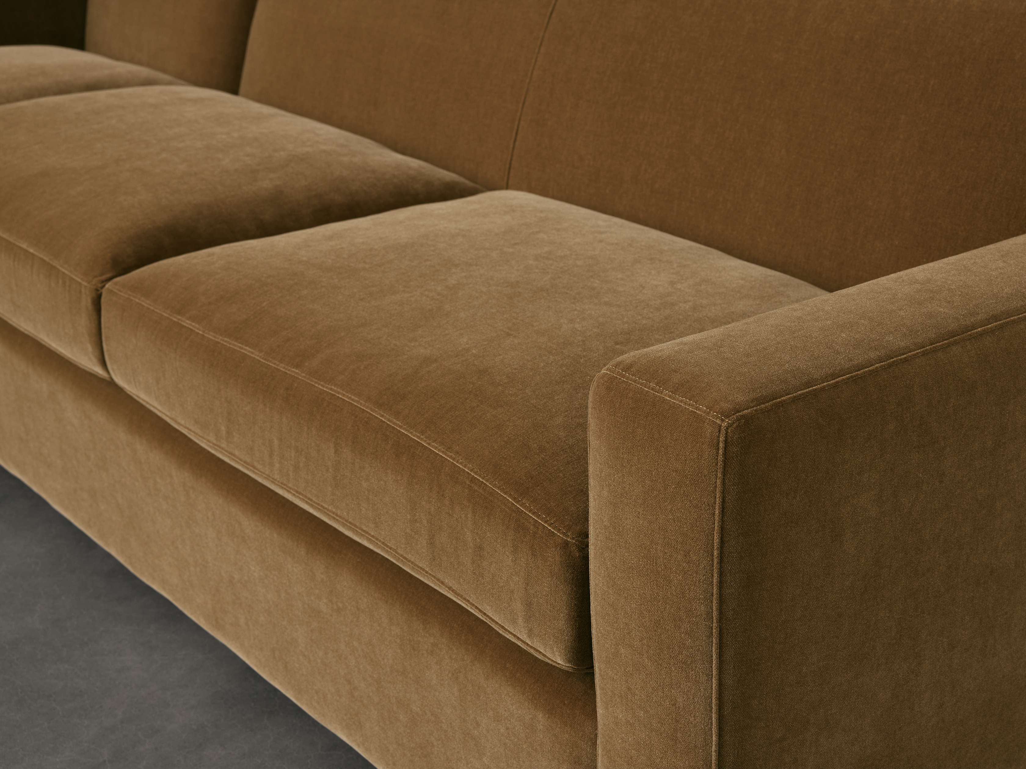 - Seat cushions contain dense foam made from partially plant-based material, padded with a blend of sterilized down and feathers.