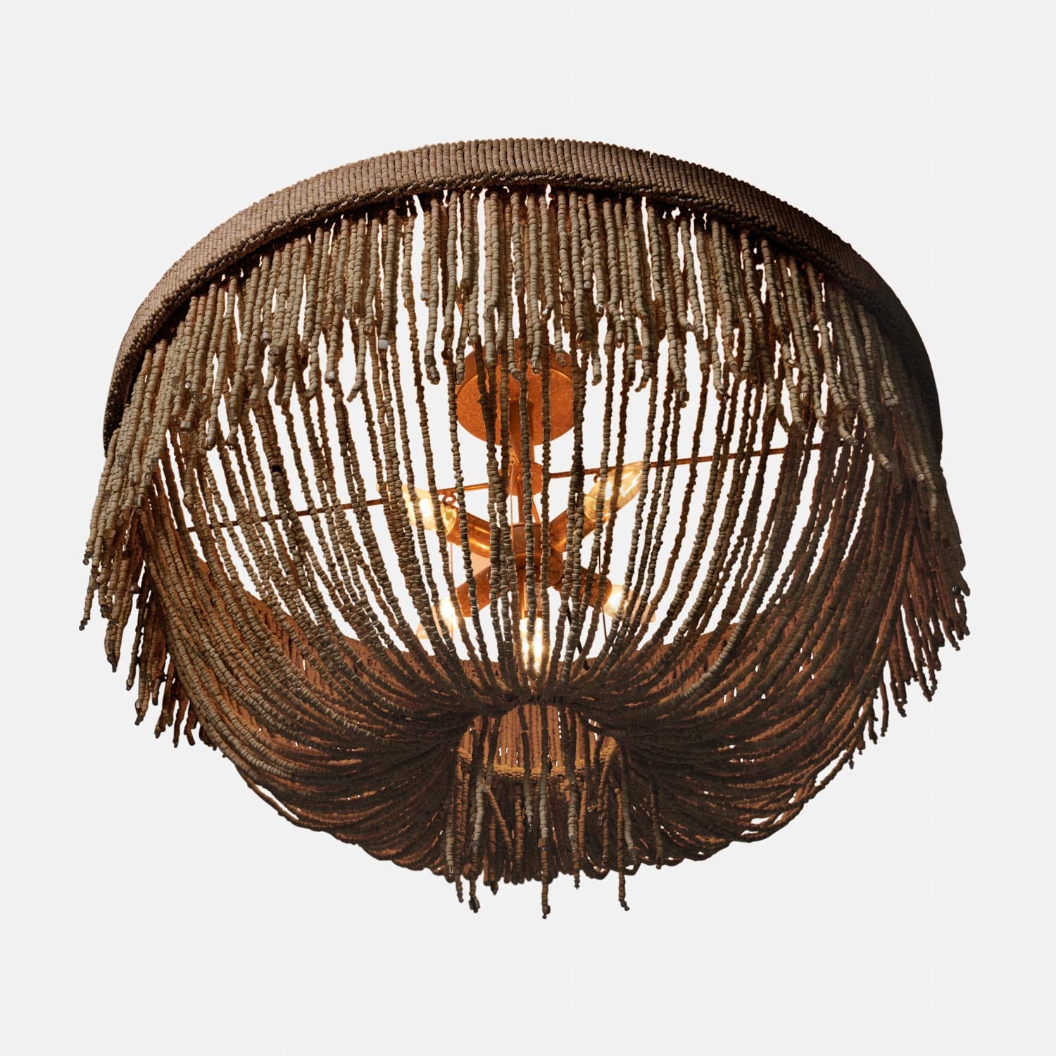 - We’ve added a metallic luster to our Carmen chandelier, using Bronze coco beads to create a whole new look for this flirty, draped silhouette.