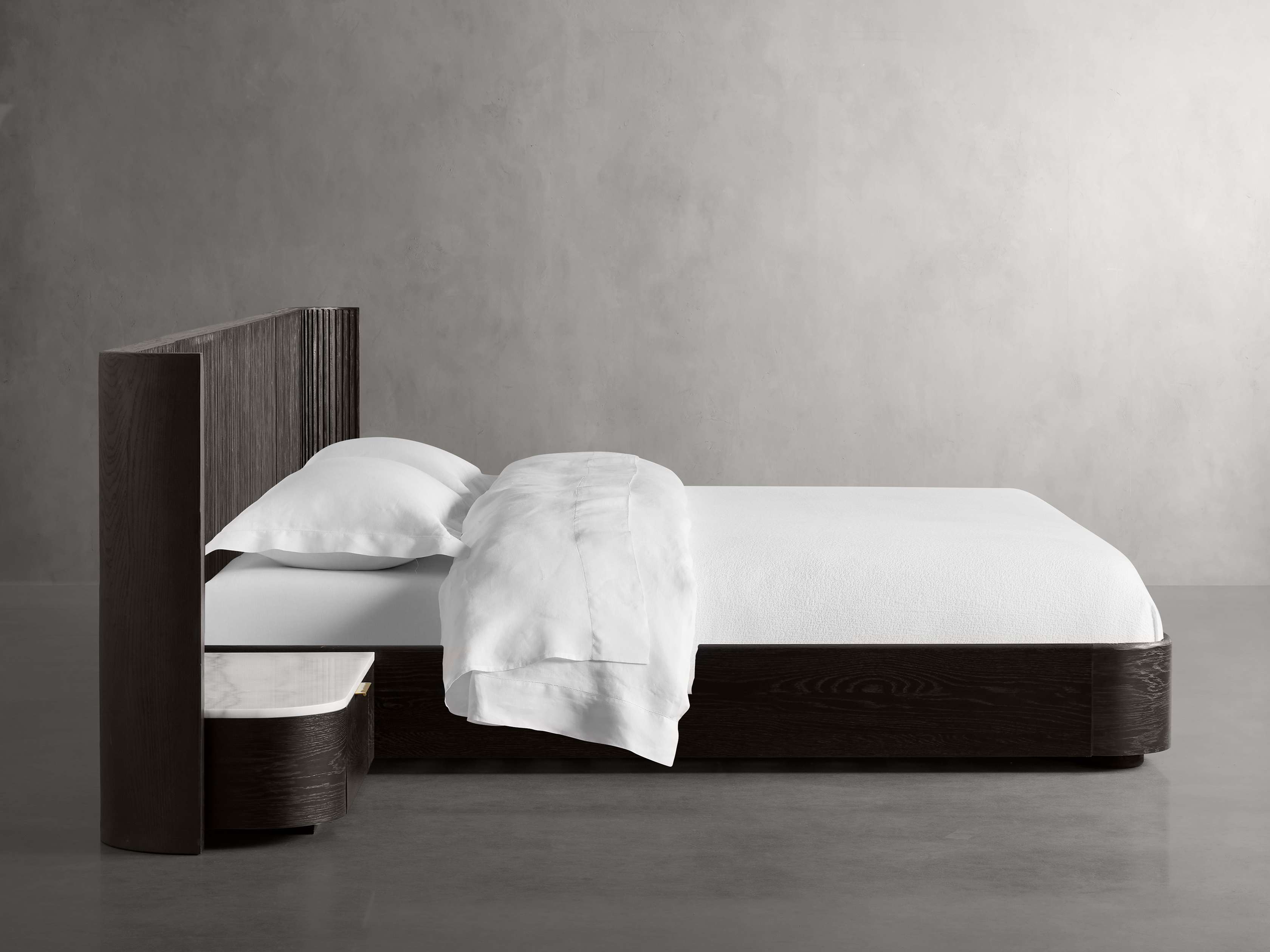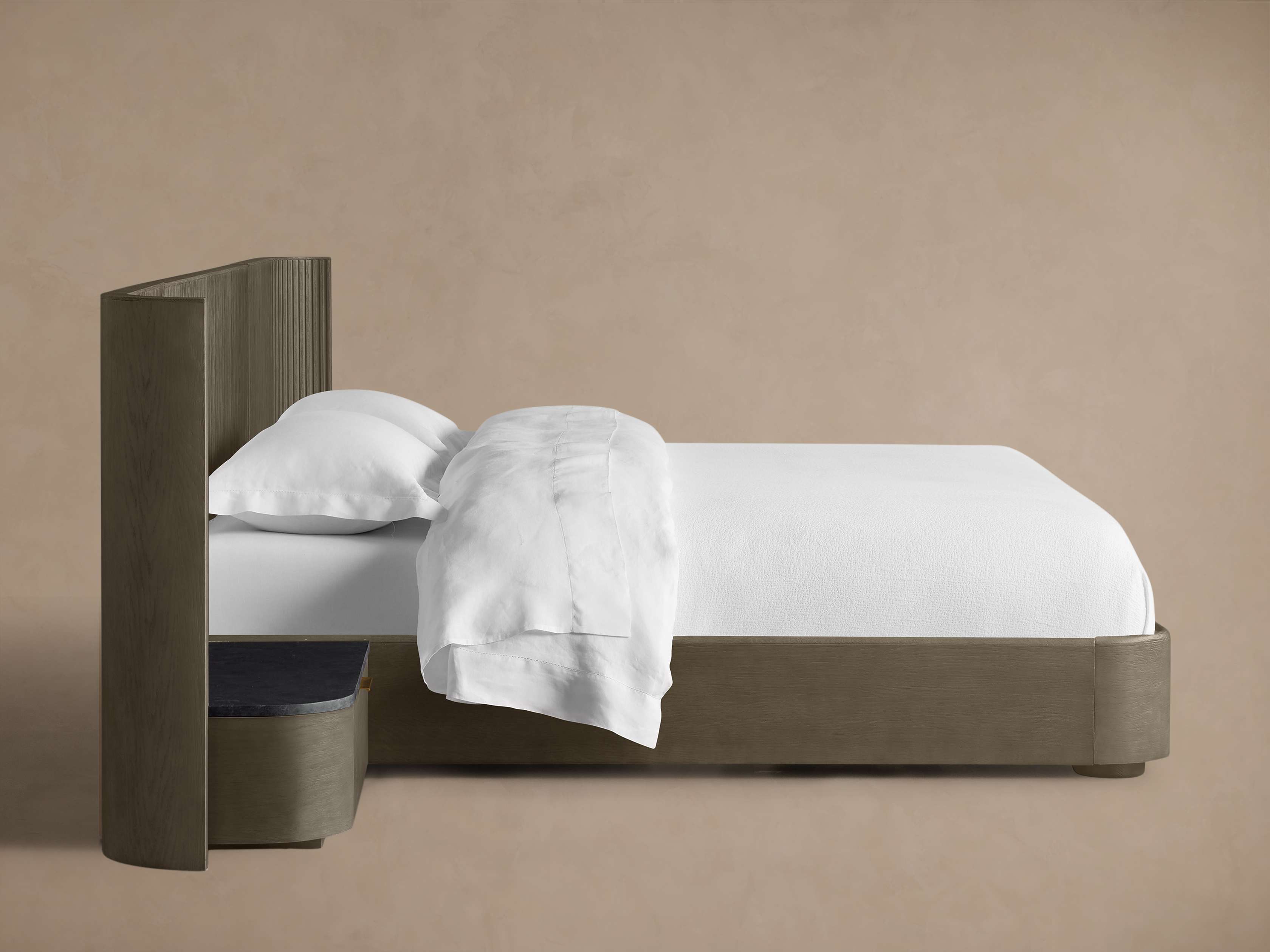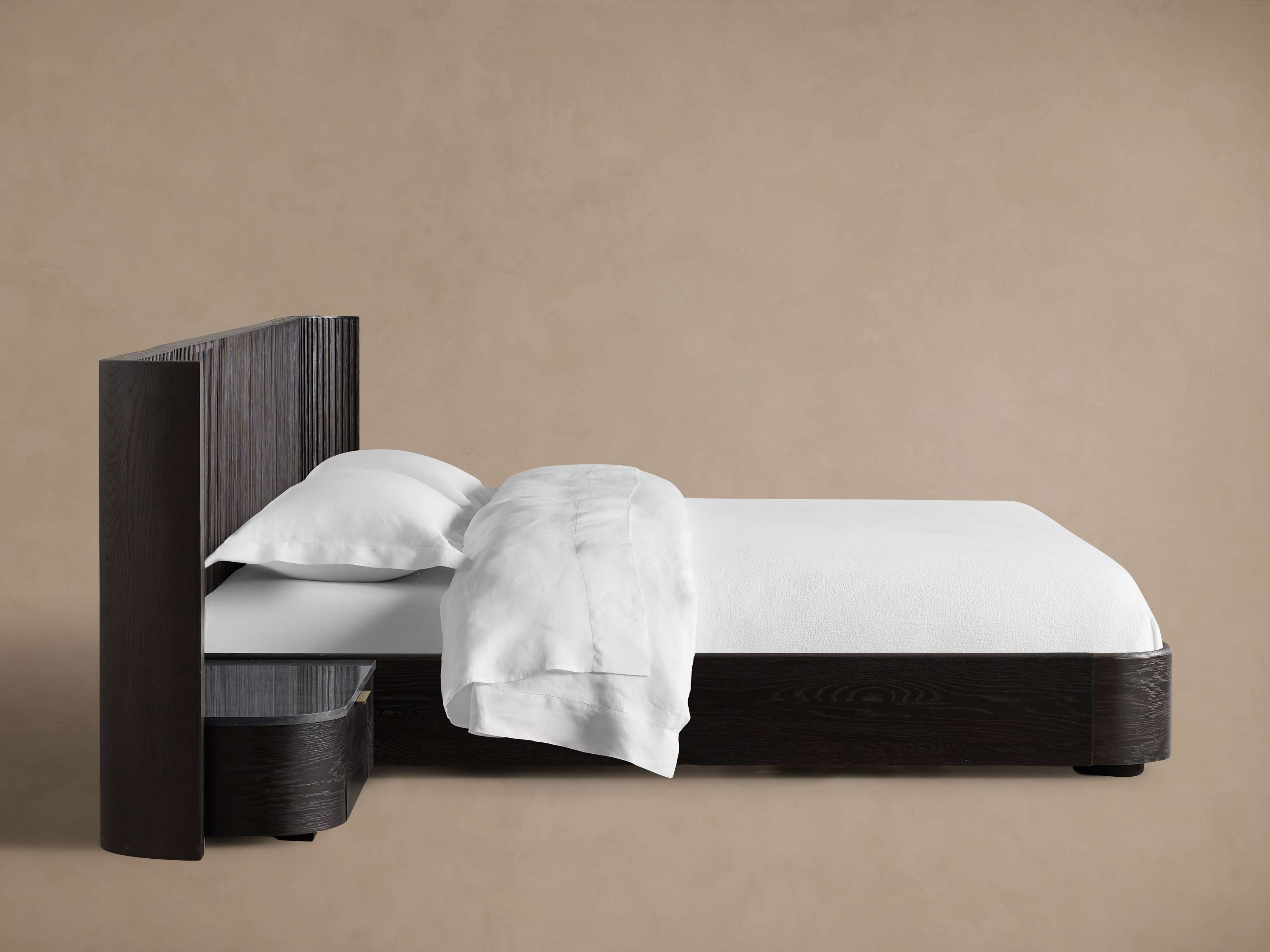 - Finnley pieces with a Honey finish are constructed from white oak wood with oak veneers; Liath Smoke, Ebony, and Mocha finished pieces are constructed from Finnish pine with oak veneers.