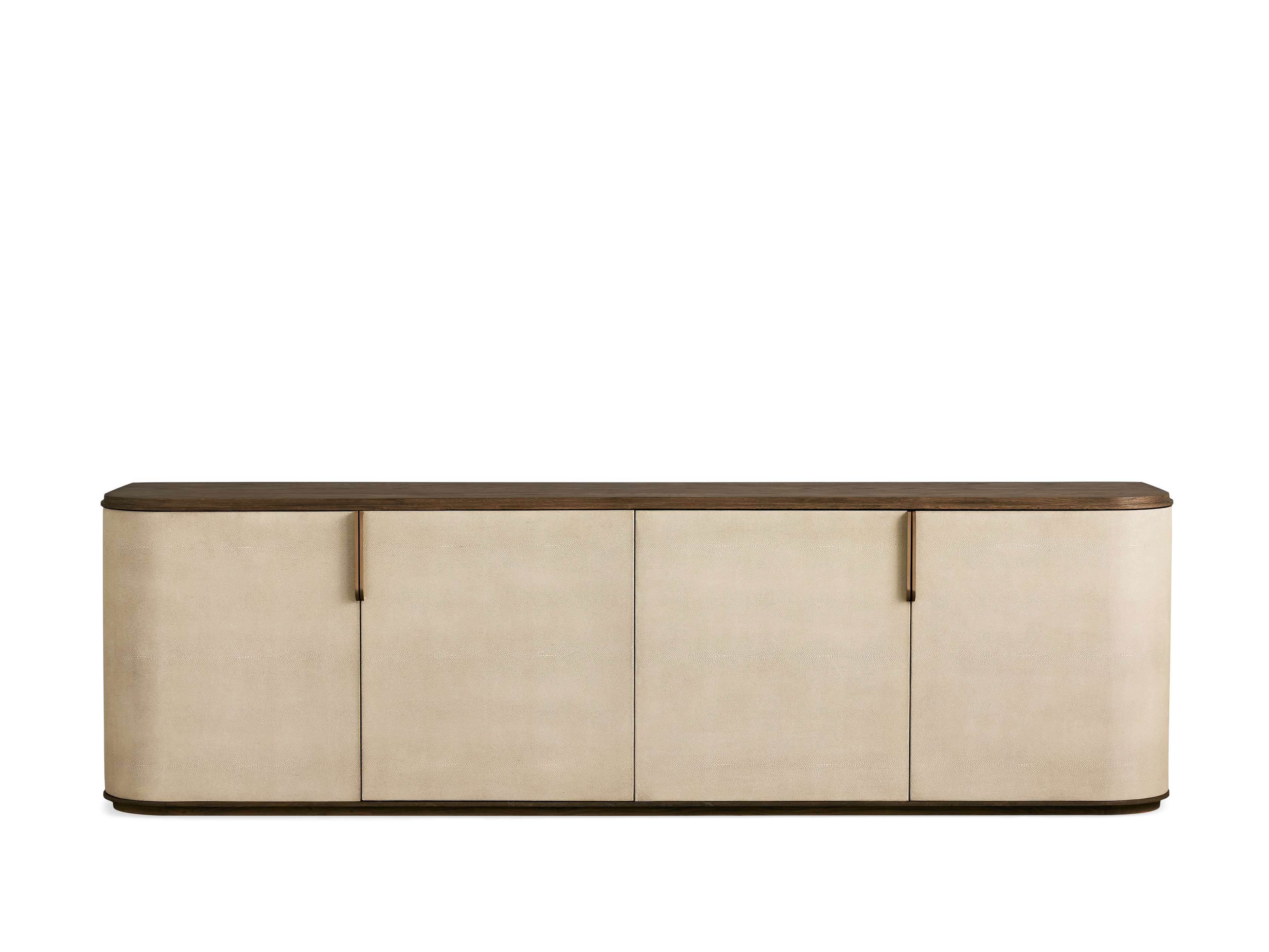 - Craftsman-built bases are made from solid beech wood, oak veneer, and engineered hardwood that beautifully complements the faux shagreen finish combinations.