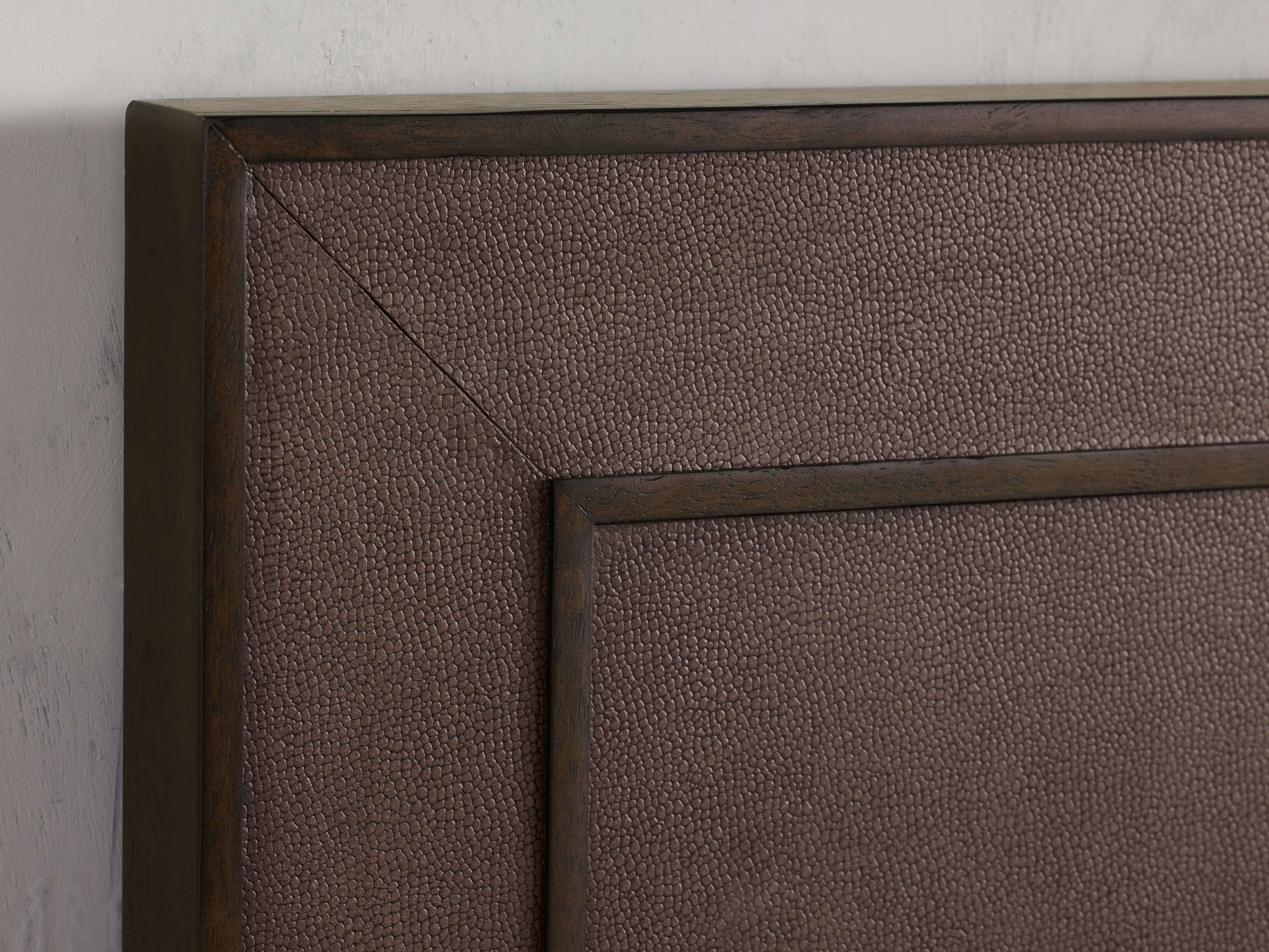 - Reconstituted faux leather insets are dyed and artfully embossed with textural shagreen detailing.