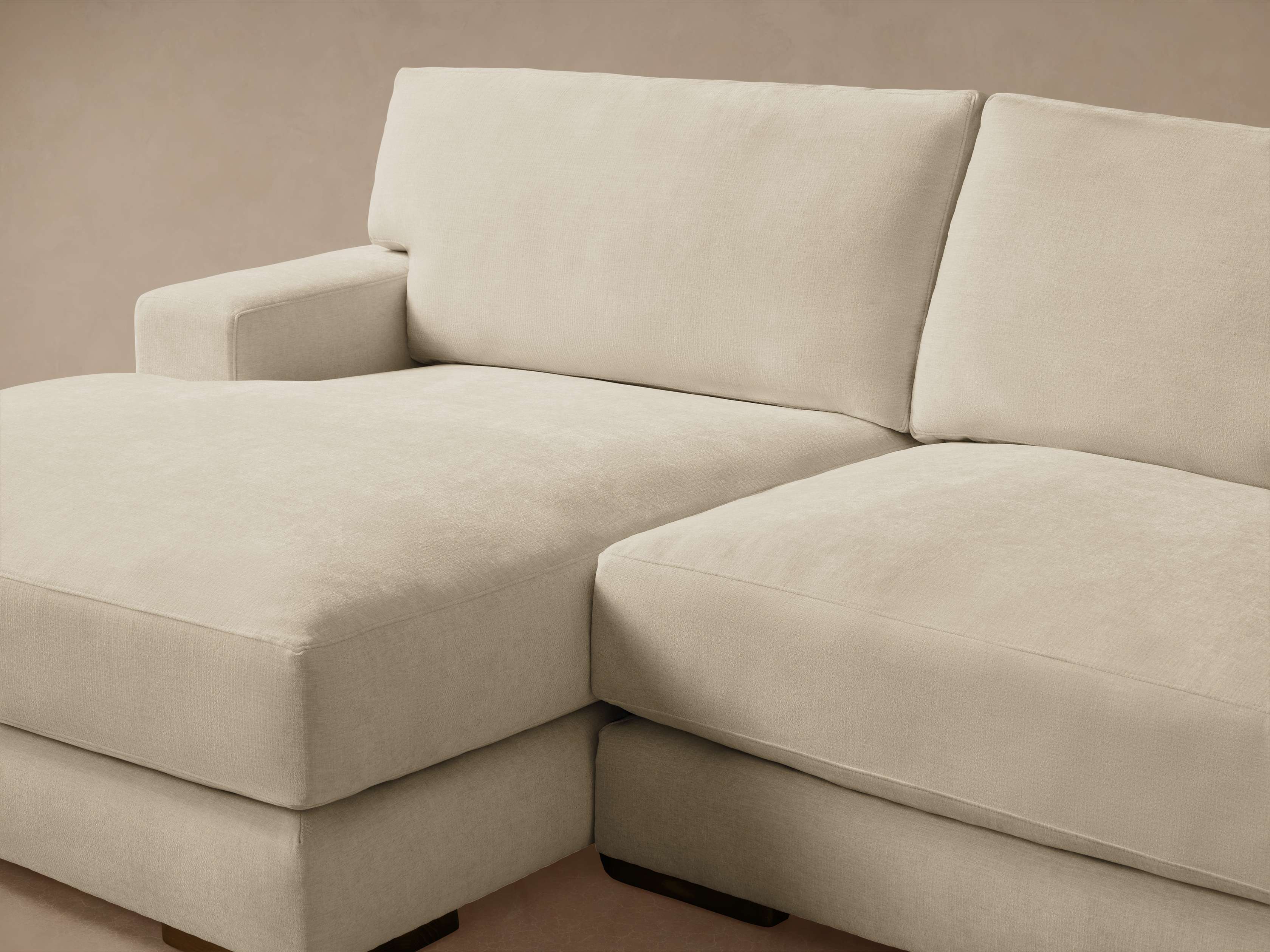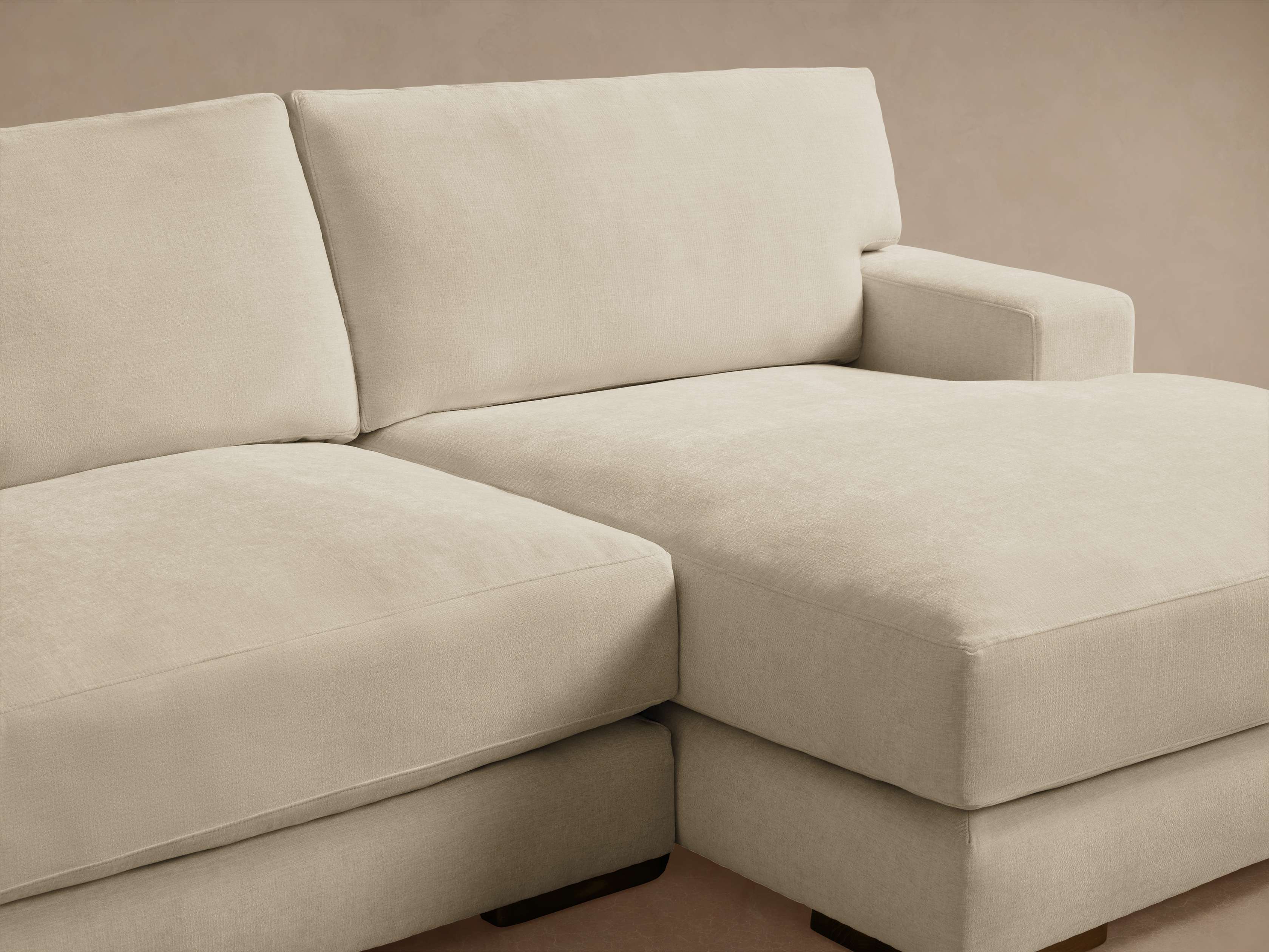 - Seat cushions contain dense foam made from partially plant-based material, padded with a blend of sterilized down and feathers.