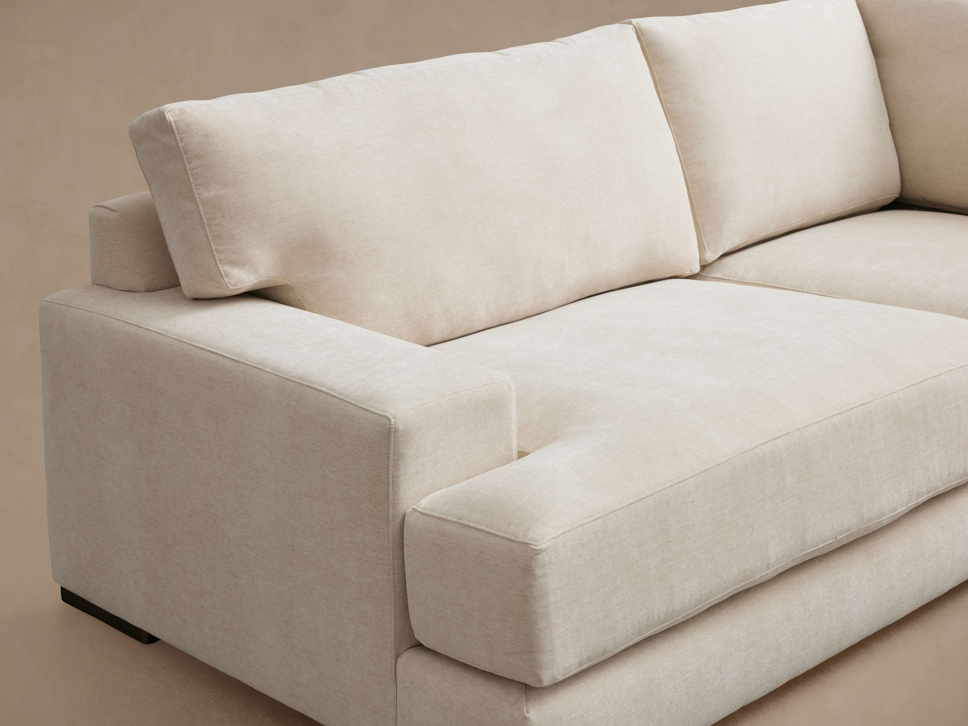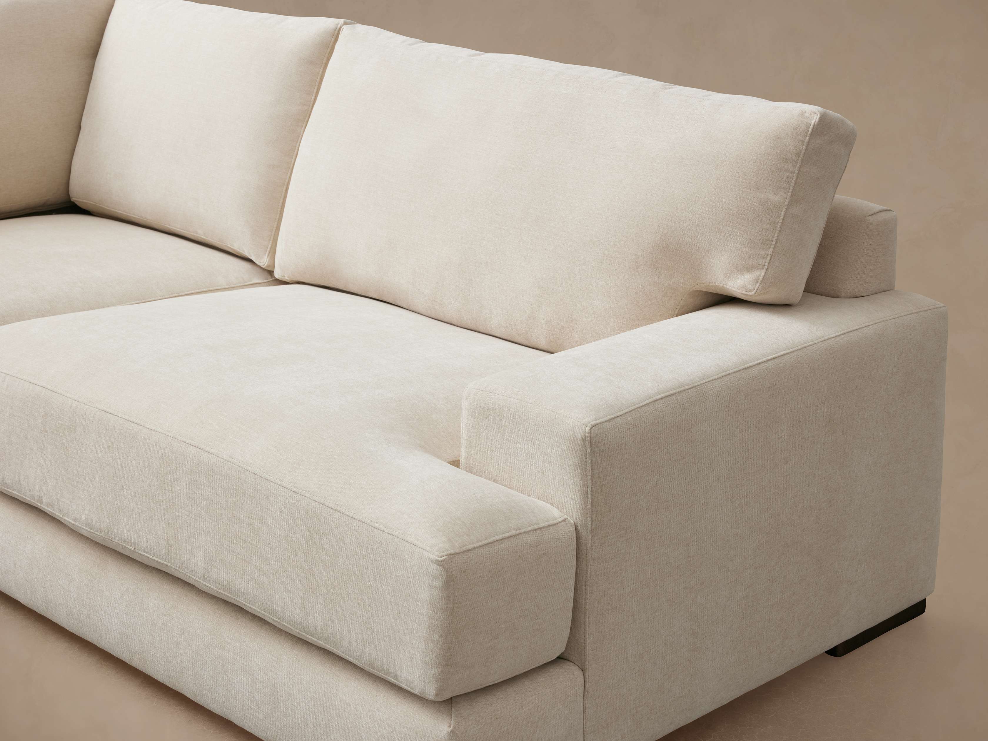 - Seat cushions contain dense foam made from partially plant-based material, padded with a blend of sterilized down and feathers.