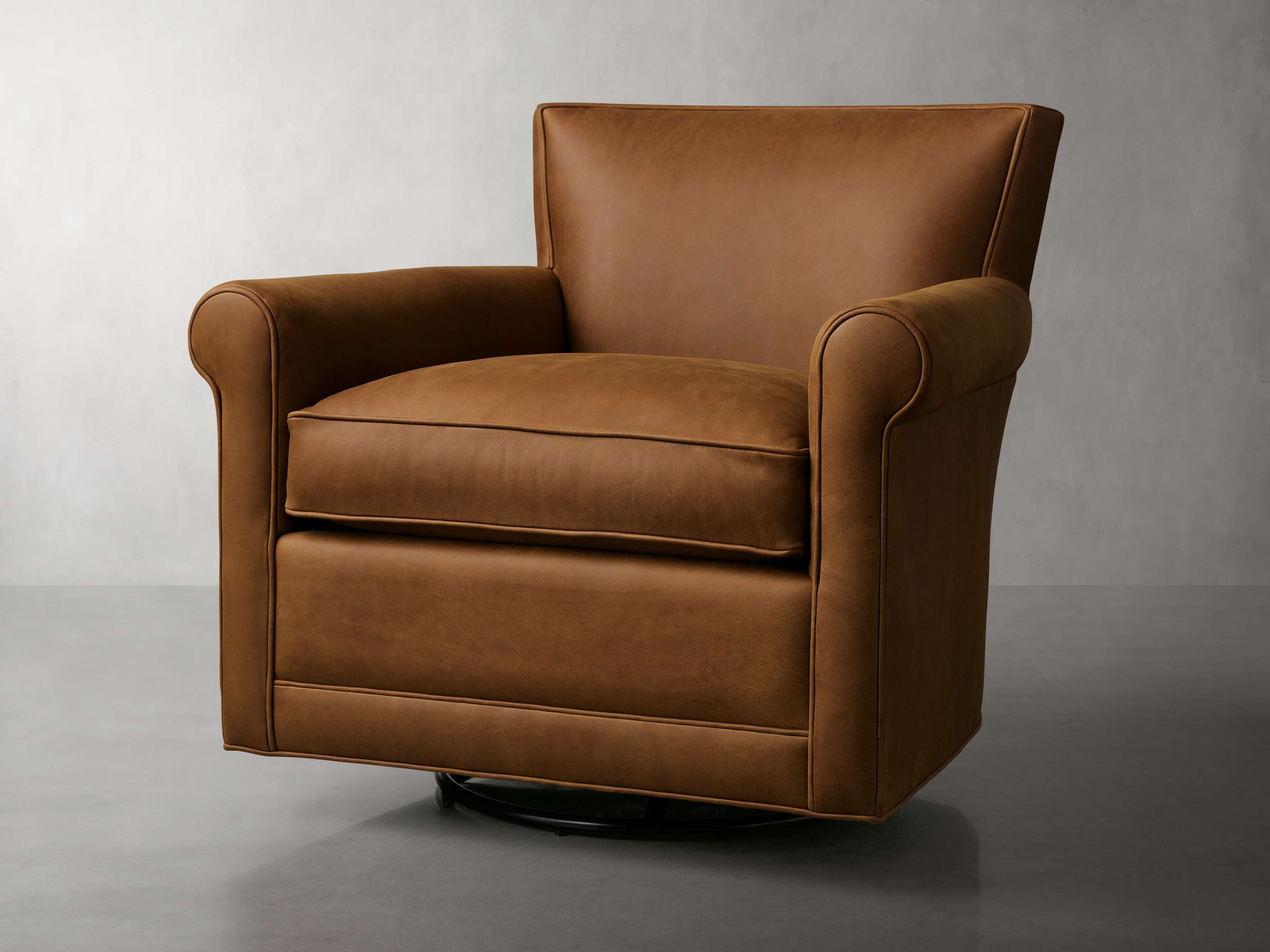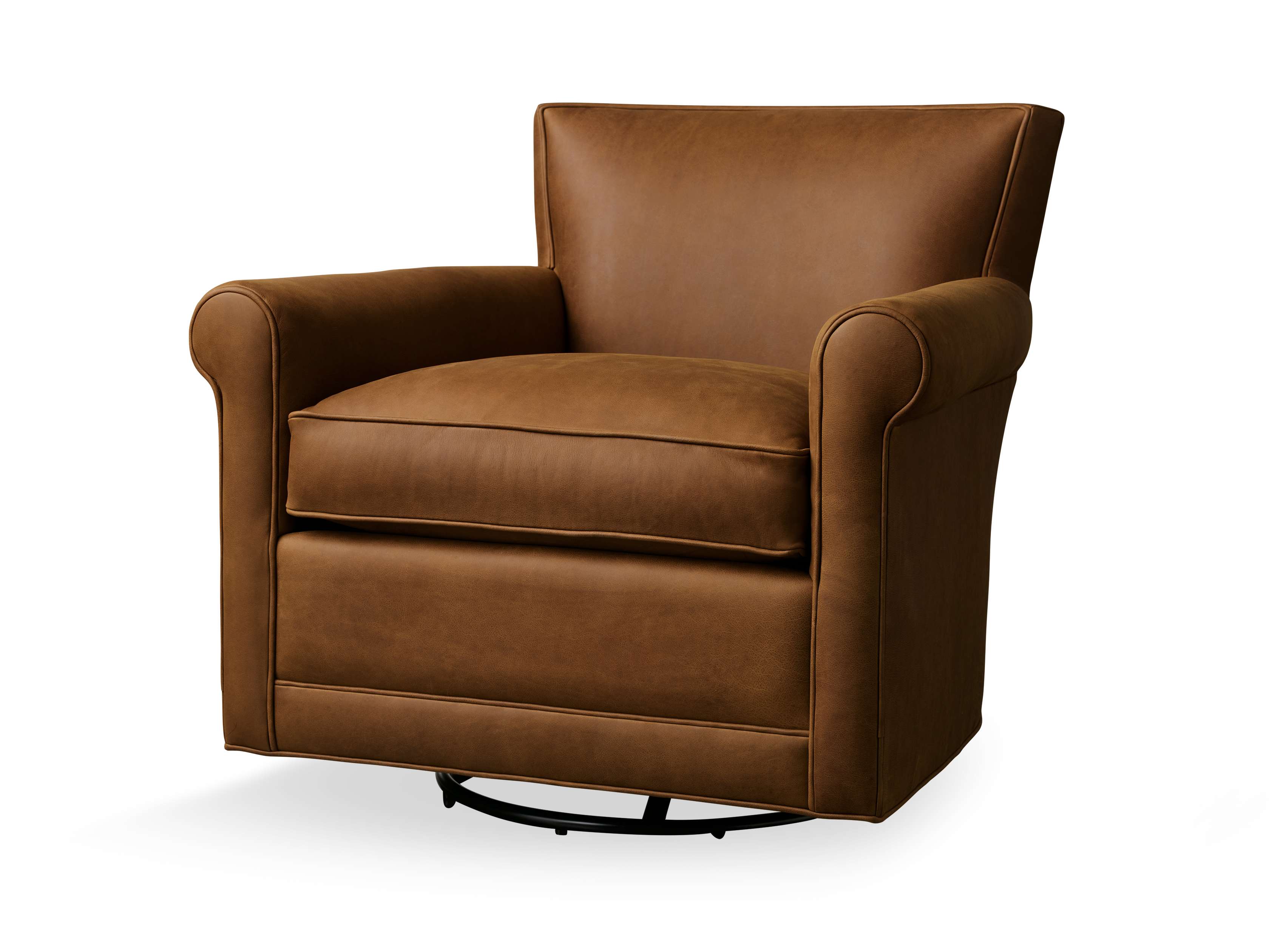 Rudy Leather Rolled Arm Swivel Chair