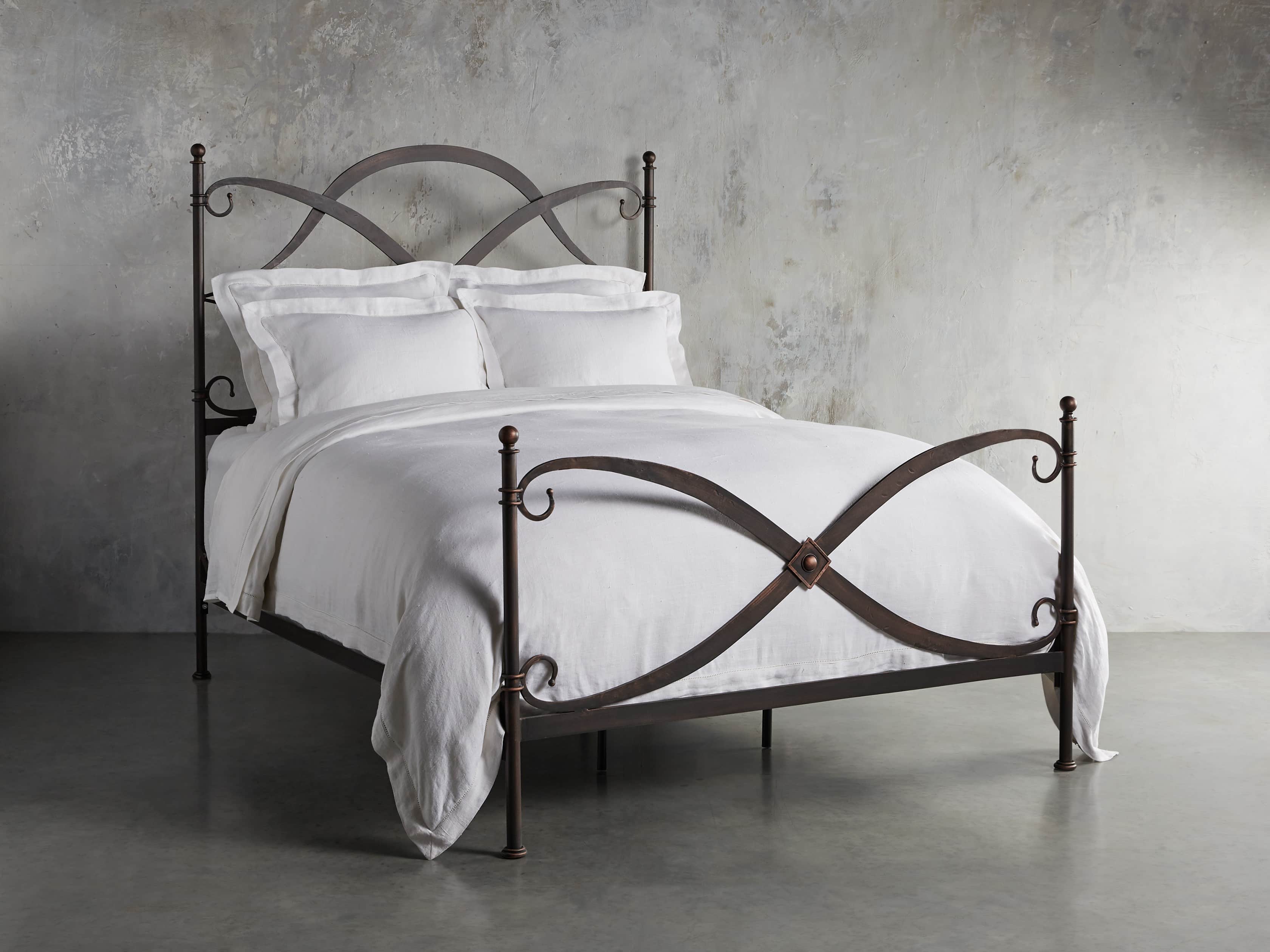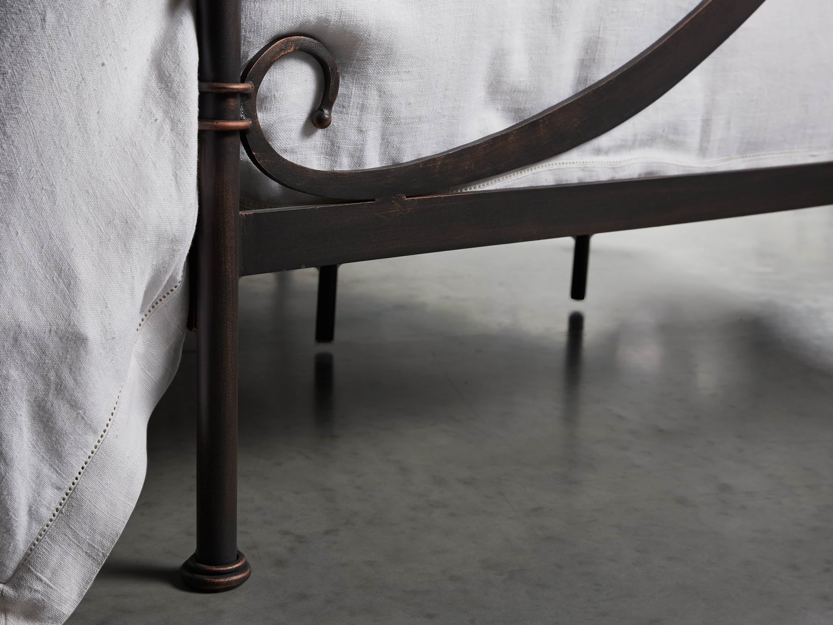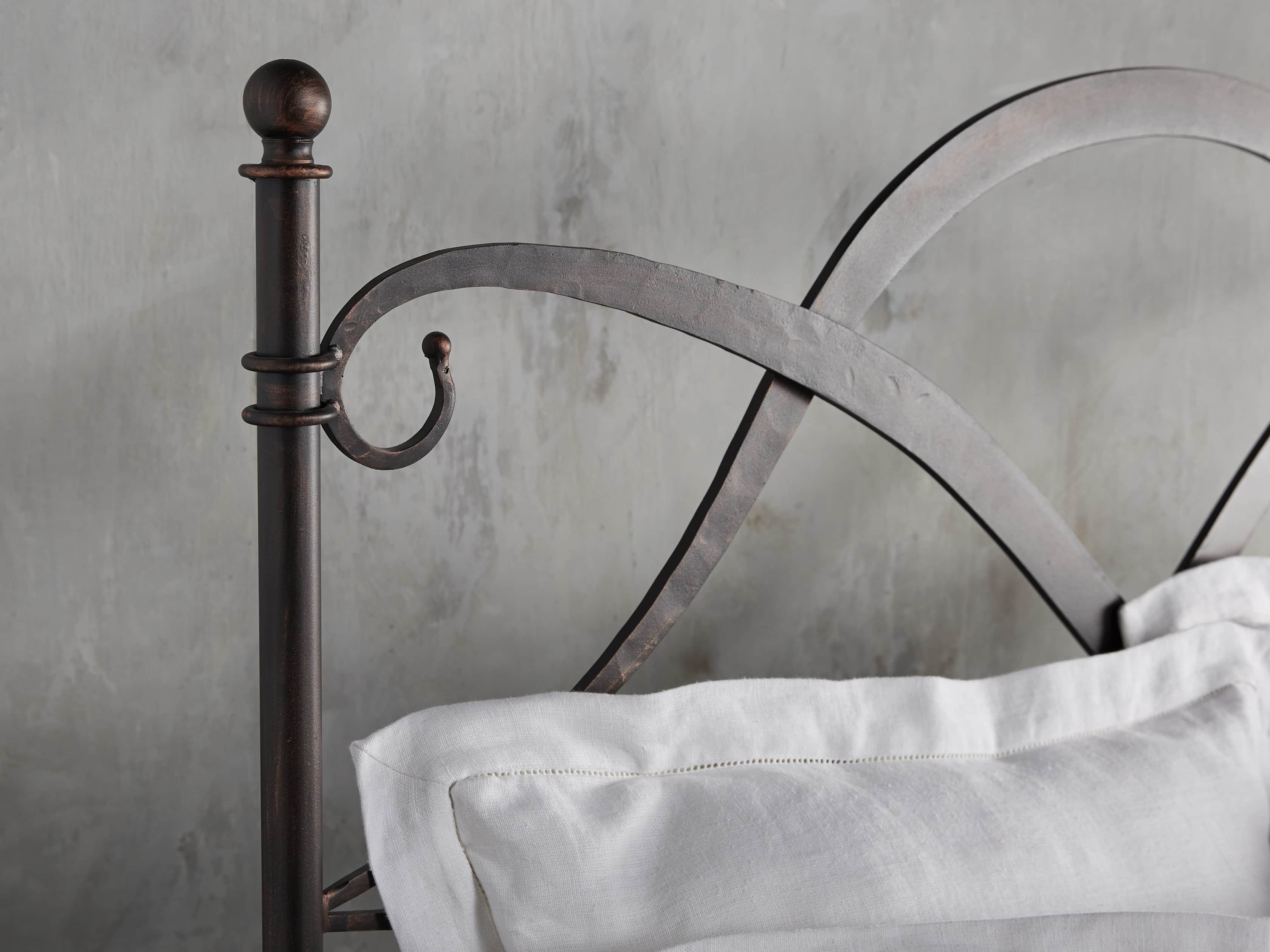 - Bed frames are craftsman-built from hand-forged wrought iron reinforced with solid iron bars forged to each bed rail—providing reliable support and stability for mattress sets.