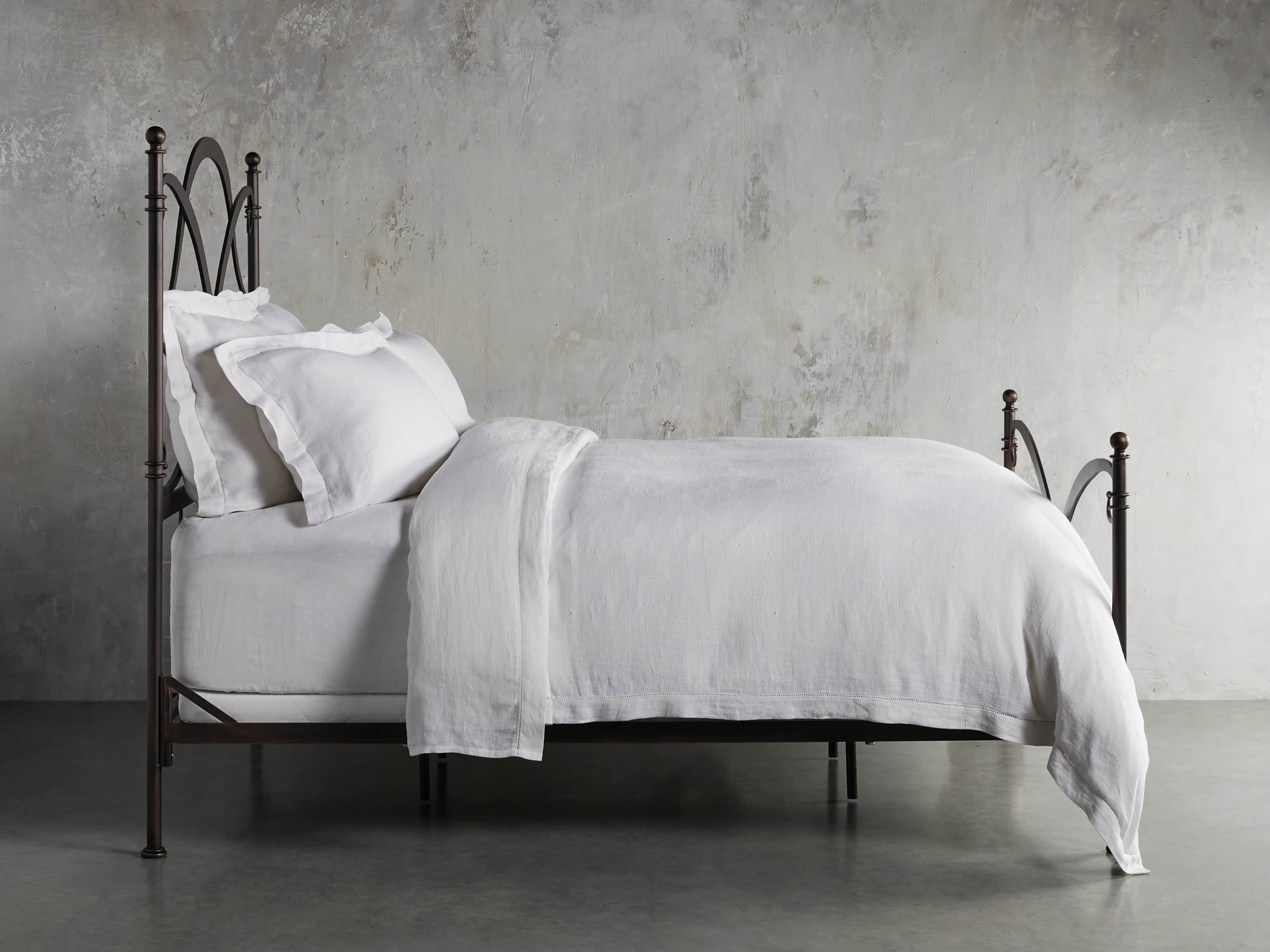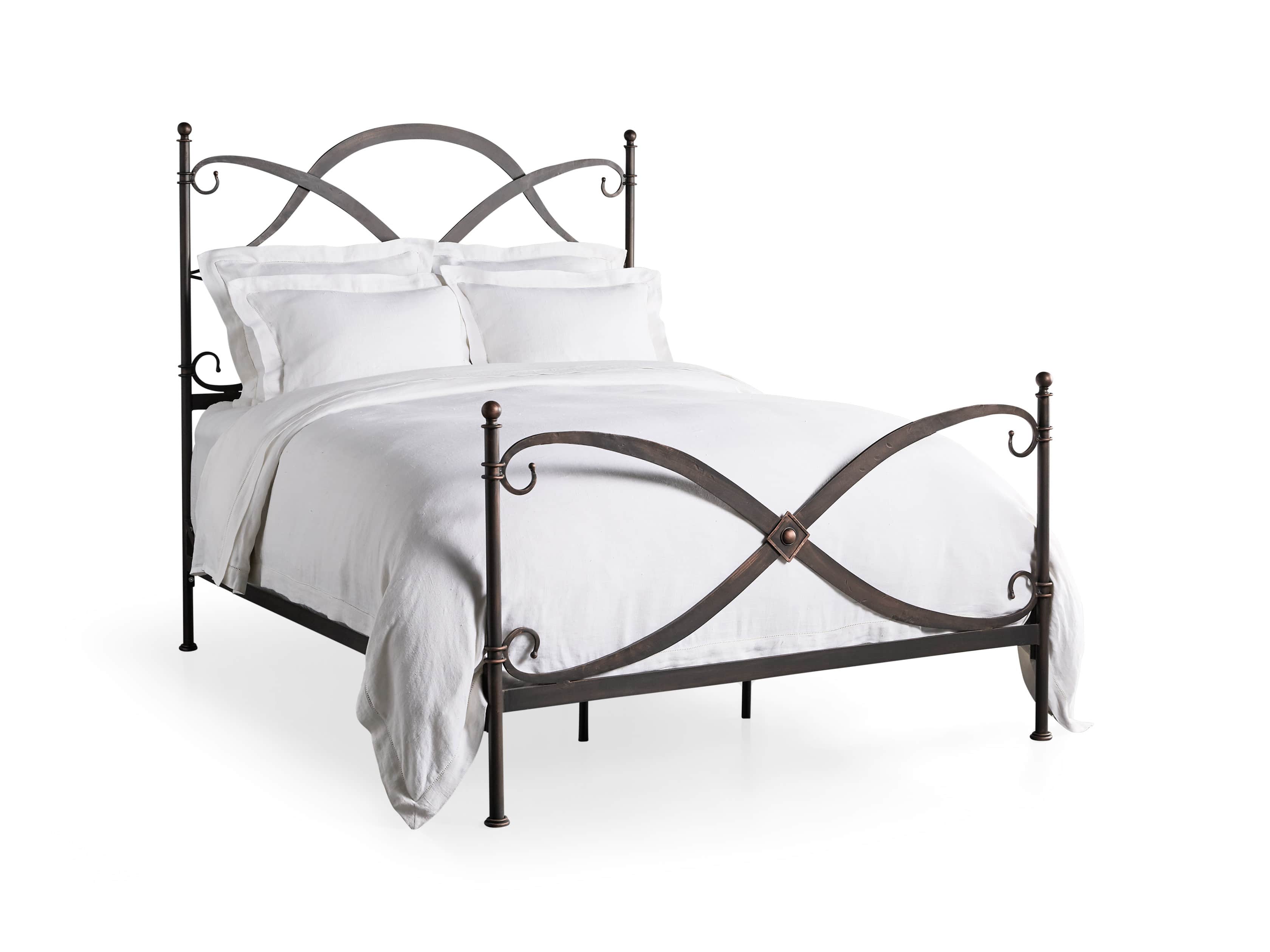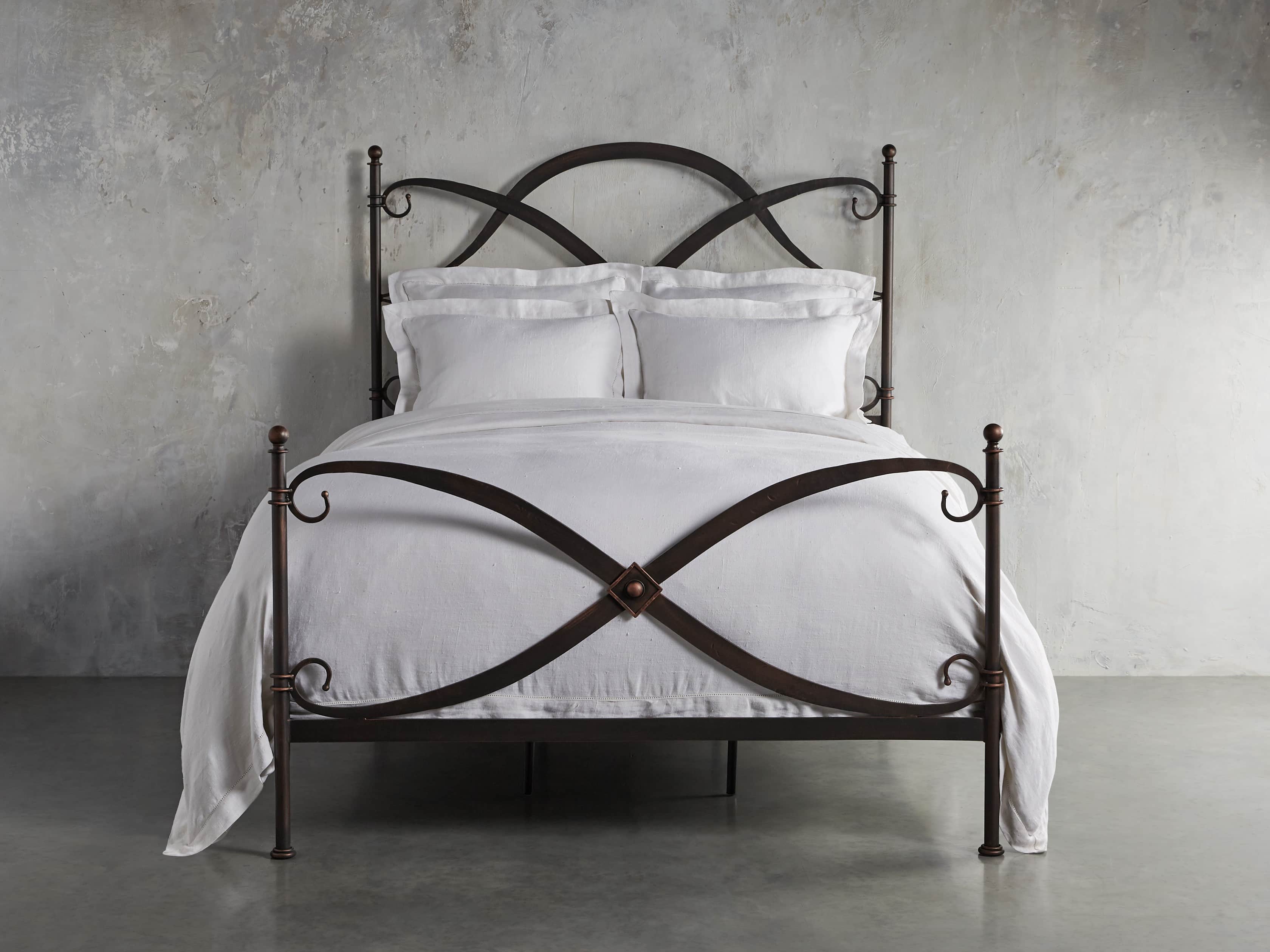 - Bed frames are craftsman-built from hand-forged wrought iron reinforced with solid iron bars forged to each bed rail—providing reliable support and stability for mattress sets.