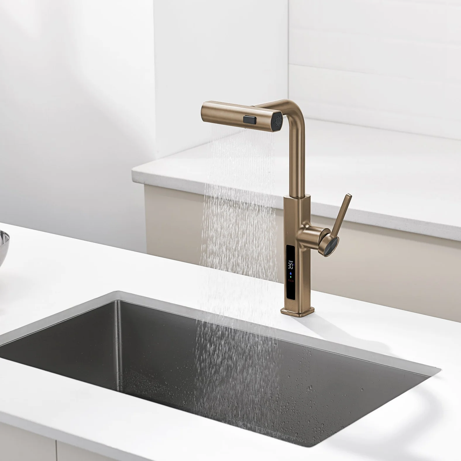 Ausziehbare Küchenarmatur Wasserfall mit Temperaturanzeige