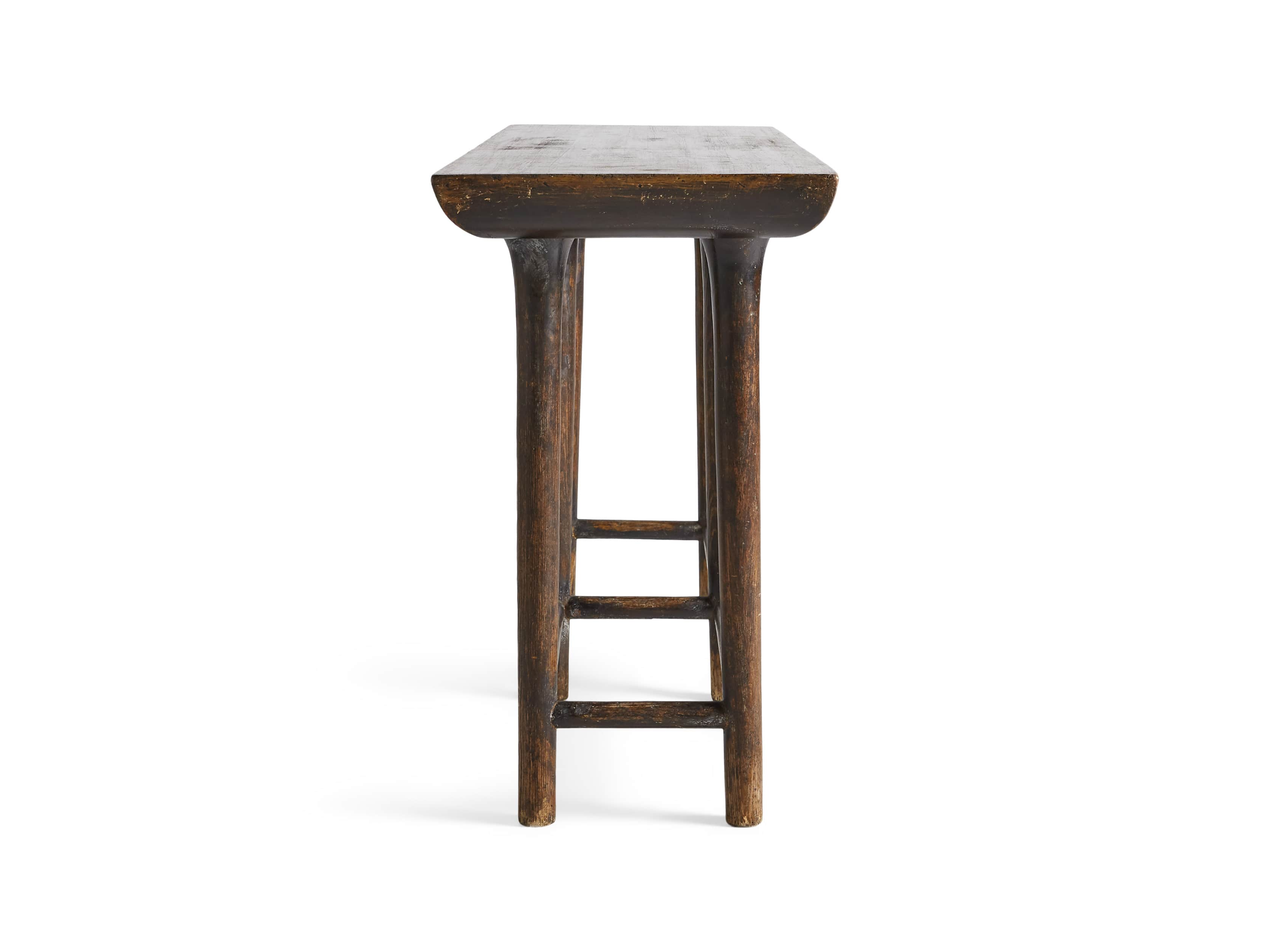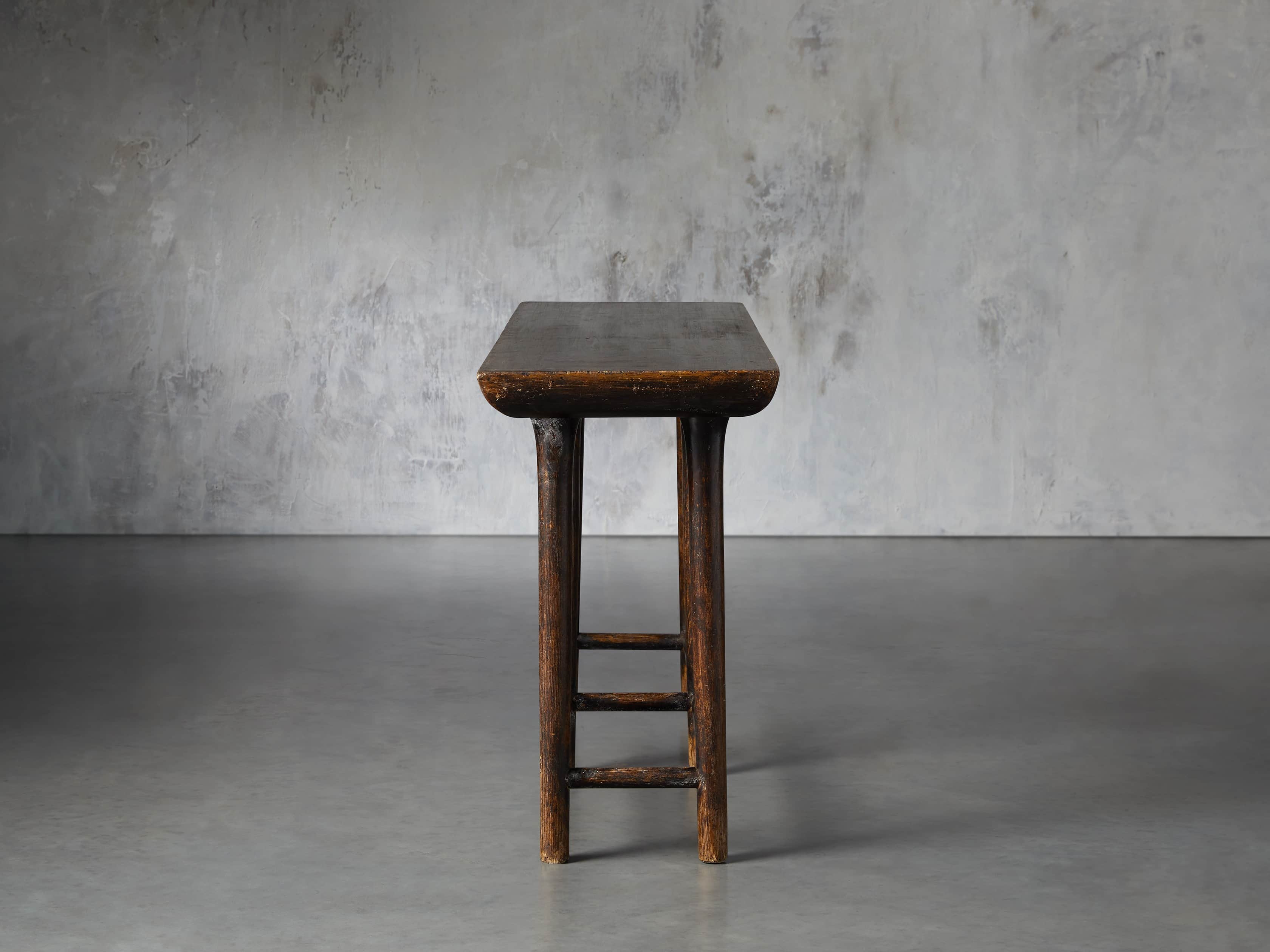 - Yasu console tables are hand-built by Chinese artisans from solid reclaimed pine, using traditional Chinese techniques and mortise-and-tenon joinery.